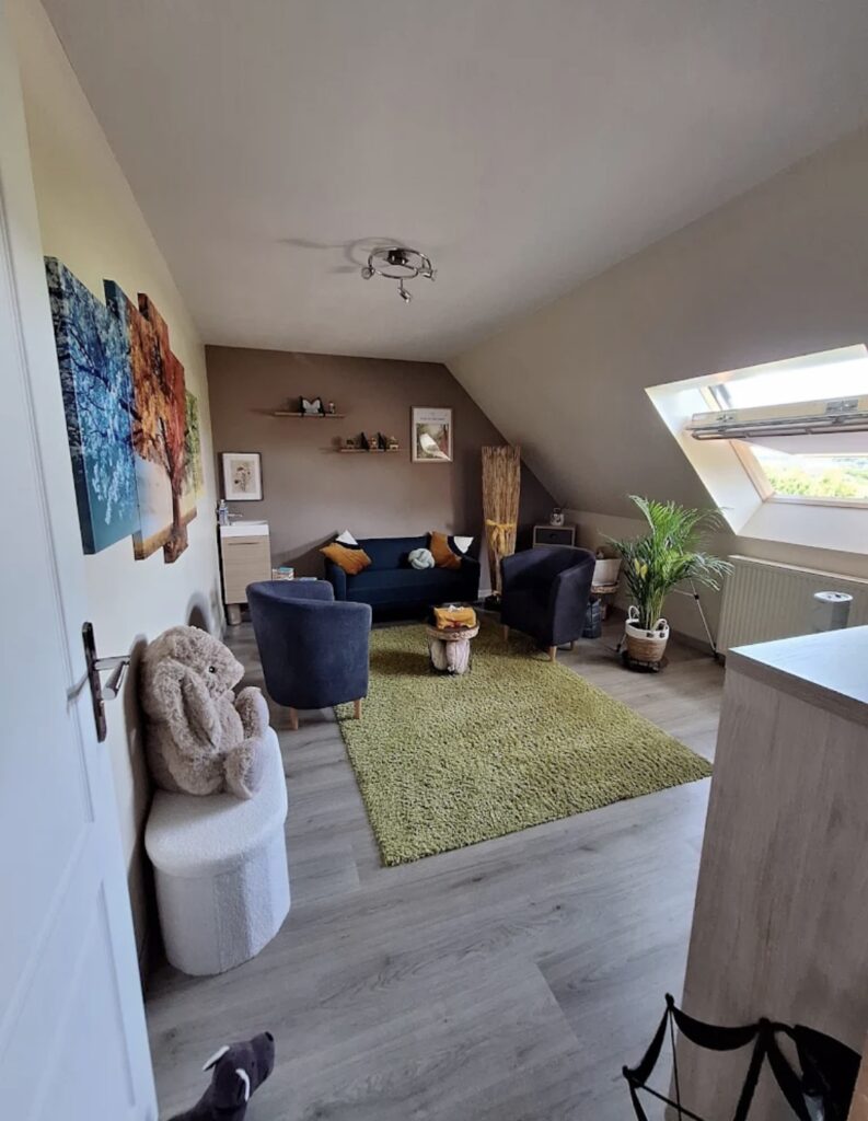 Mon cabinet est situé dans un lieu calme et facilement accessible. L’espace a été pensé pour créer une atmosphère apaisante et propice à l’échange, avec un cadre professionnel et chaleureux où vous vous sentirez en sécurité.